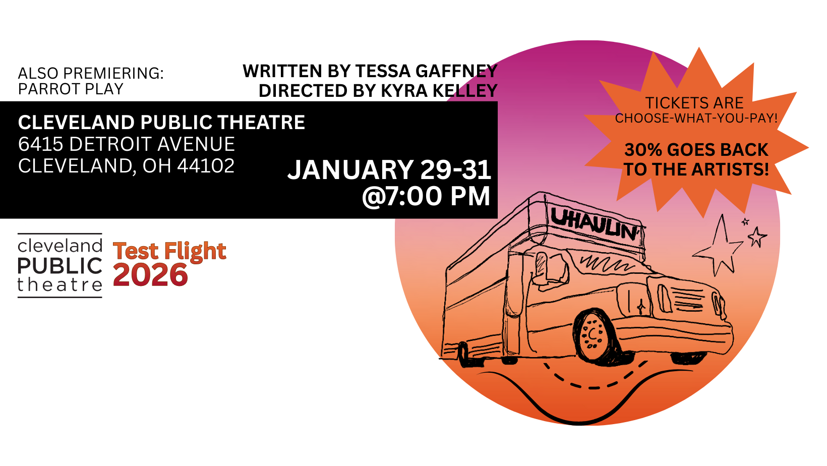 After Test Flight 2026, UHAULIN’ will be expanded into an episodic series touring across Northeast Ohio: five short plays chronicling the ongoing, hilarious, and heartfelt adventures of six queer characters.